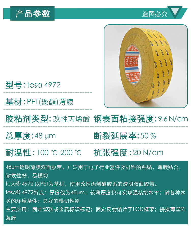 主營(yíng)產(chǎn)品:耐高溫膠帶,雙面膠帶,醋酸布膠帶,瑪拉膠帶,保護(hù)膜,布基膠帶,美紋紙膠帶,鋁箔膠帶,銅箔膠帶,鐵氟龍膠帶,玻璃纖維膠帶,泡棉膠帶,亞克力膠帶等